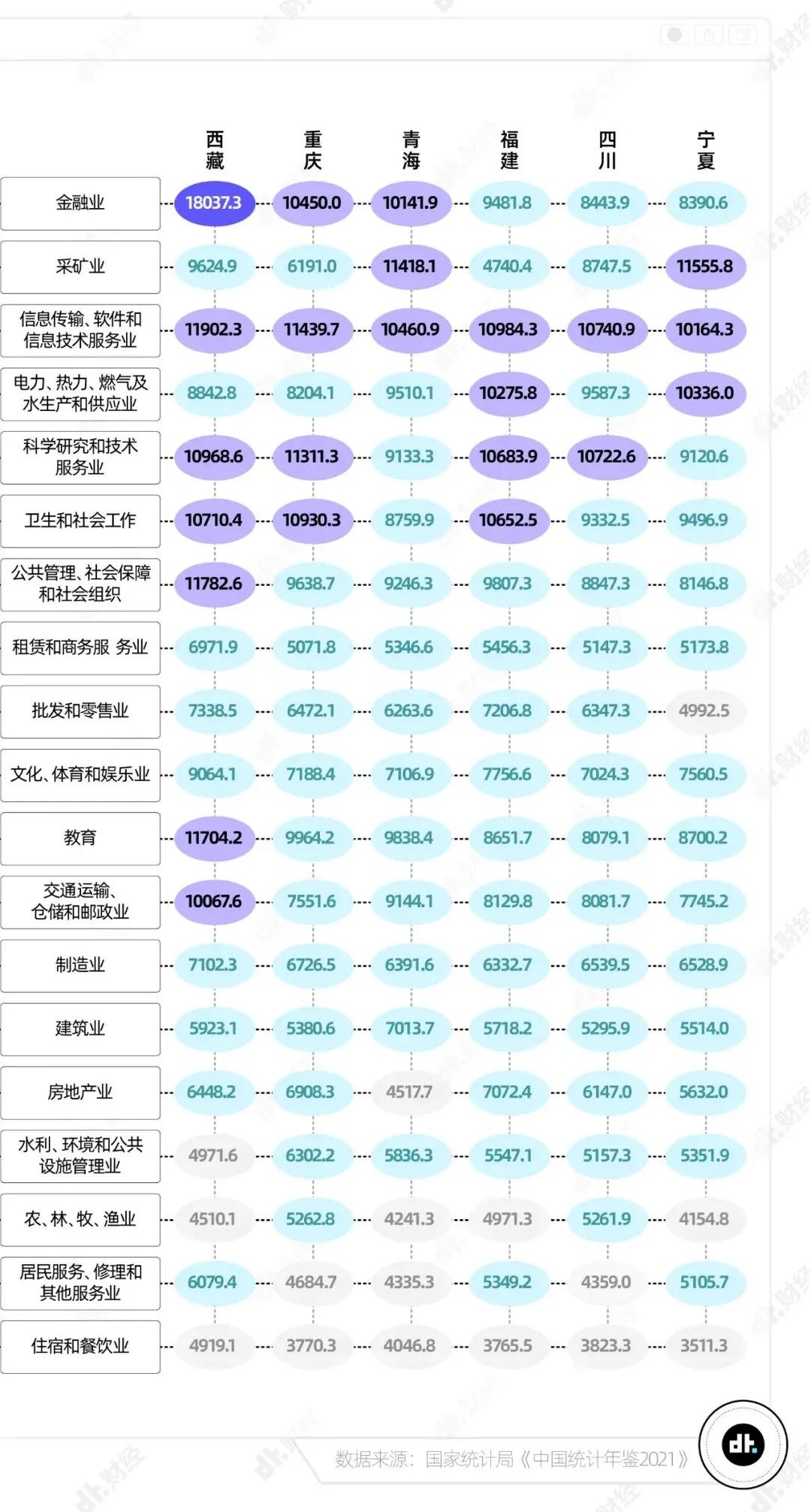 进一步的数据分析还显示,在不同地区,高薪行业的排名是不同的。