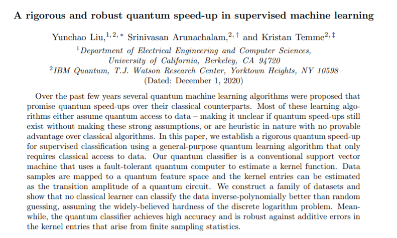 2020 年夏,他们开始研究如何使用内核来证明量子计算机可以促进监督学习。 最后,他们找到了一种方法。