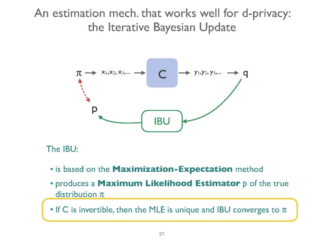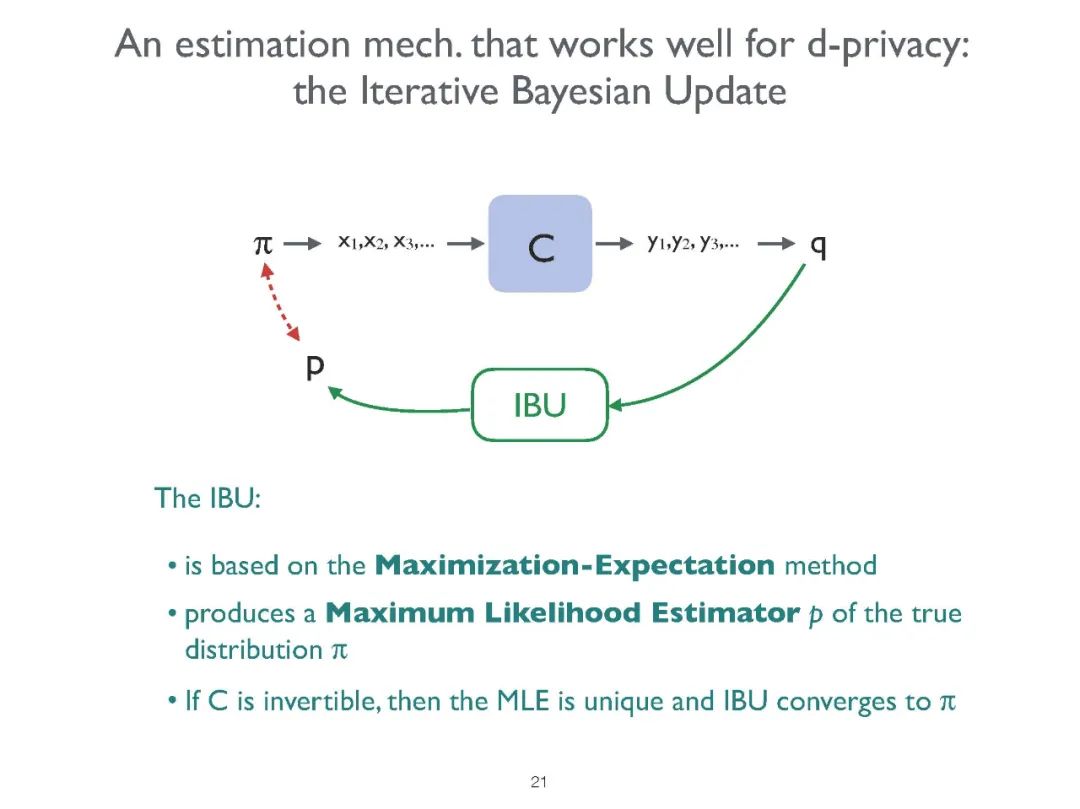 差分隐私(DP)是保护隐私的敏感数据,同时保持其实用性的一个最成功的提议。在这次演讲中,我们将简要介绍DP框架,然后提出一个新的机制来实现分布式DP。也就是说,在一个数据收集分布在不同组织中的场景中,这些组织不希望公开原始数据,而只希望公开它们经过脱敏的版本,并且仍然可以从合并来自不同来源的信息的优点中获益。我们提出的机制特别适合于统计期望最大化方法的一种变体的应用,由于这种方法,原始数据的效用可以被检索到一个近似的检索度,而不影响原始数据所有者的隐私。