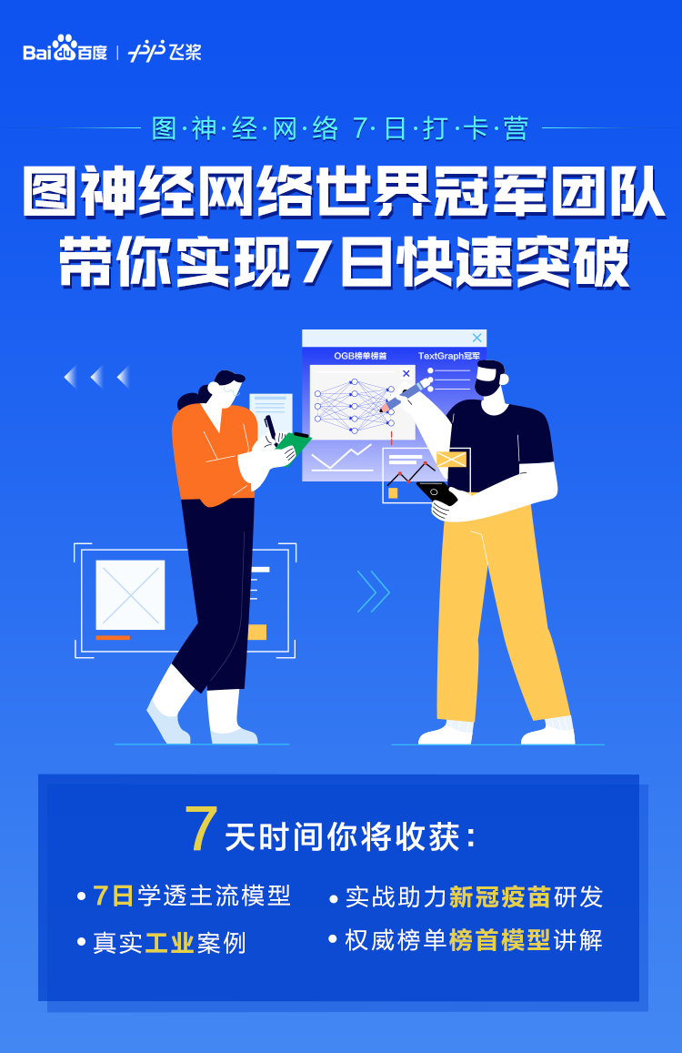 图神经网络技术已被应用在百度内数十个实际项目中,大幅度提升公司效益。为了帮助广大同学入门图学习,百度飞桨PGL团队开发了「图神经网络7日打卡营」。
