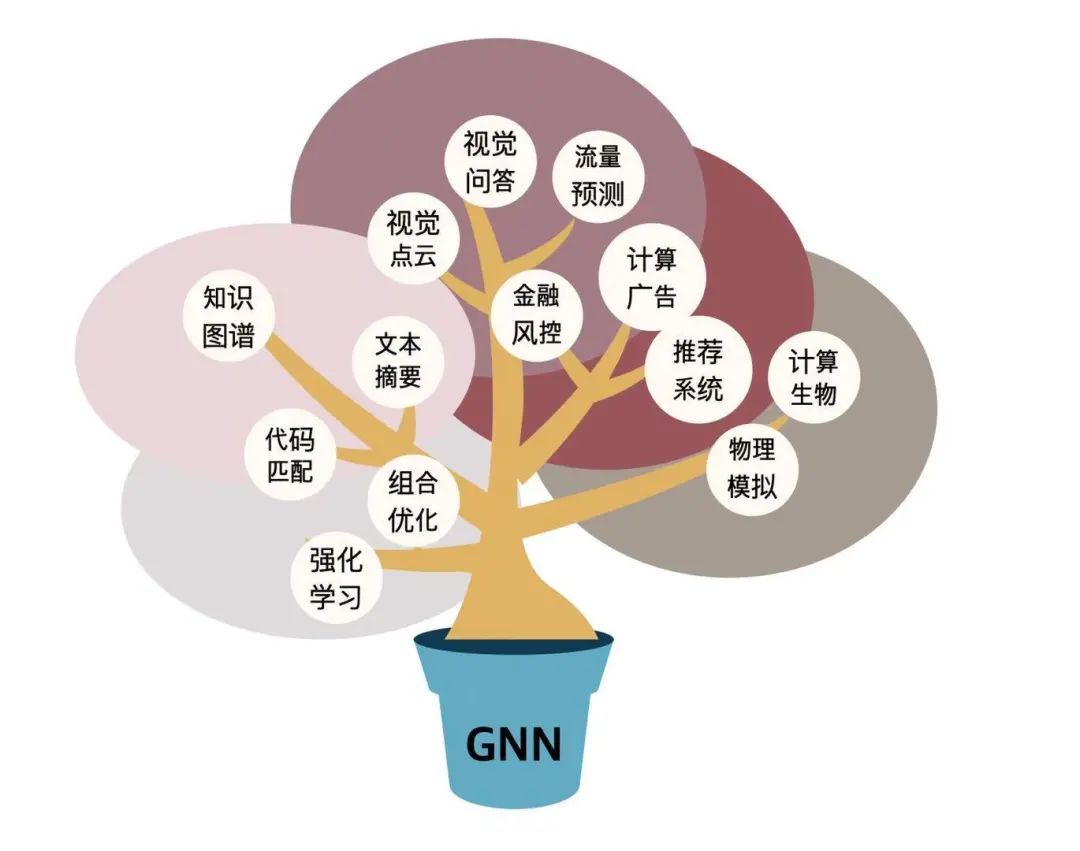 因此,图神经网络在生物学、地图、金融、搜索、推荐、高能物理学到社会科学和经济学等领域的复杂关系建模和互动系统构建起到重要作用。例如,在社交软件Twitter 和 Facebook 等社交网络上取得了显著的成功。