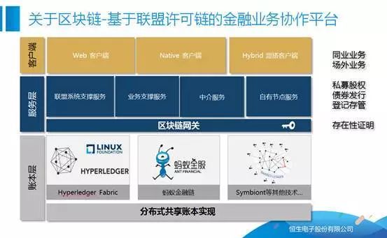 我们觉得,区块链在金融行业应用要做很多改造,我们这几年在探索基于联盟许可链的用法。同时,很多区块链技术底层技术平台不是很成熟,我们的应用架构设计要将上层业务跟下层具体区块链实现一定的隔离。