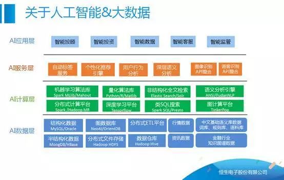 人工智能很重要的一块是跟数据有关的,你要有足够的数据,你才能做出效果来。恒生有专门的提供金融资讯数据的公司,人工智能在提升数据生产效率和数据增值服务上也是很有用武之地的。