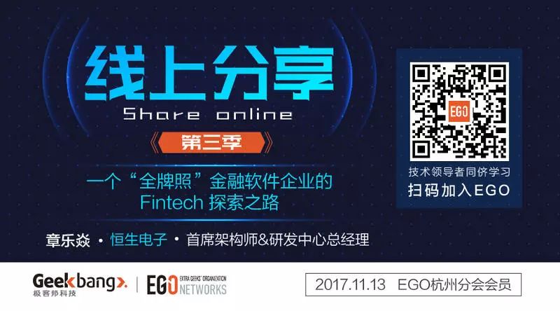 10 月 13 日,EGO 杭州分会会员、恒生电子首席架构师 & 研发中心总经理章乐焱作为线上分享第三季的嘉宾,与大家交流了恒生在 ABCD( A - 人工智能、B - 区块链、C - 云计算、D - 大数据)前沿技术与主流金融机构合作探索的成果和历程。本文根据当天口述内容整理。