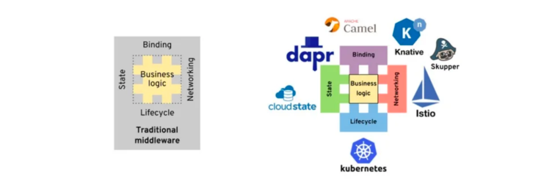 Multi-Runtime推动了中间件生态的标准化和透明化下沉,实现业界基础能力API接口范式的统一。