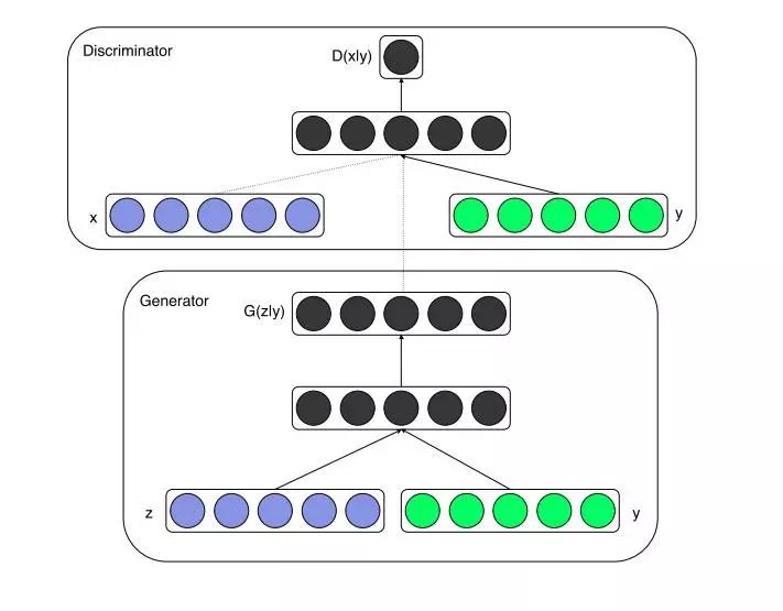 GAN 使用最广泛的变体之一是有条件的 GAN(conditional GAN,cGAN),它是通过简单地将条件向量与噪声向量一起添加而构成的(见图 7)。在 cGAN 之前,我们从随机的噪声样本 z 中随机生成图像。如果我们想要生成具有某些所需特征的图像,有没有什么方法可以为模型提供额外的信息,无论我们想要生成什么样的图像?答案是肯定的,有条件的 GAN 是这样做的。通过对提供给生成器和判别器的附加信息调整模型,可以指导数据生成过程。有条件的 GAN 用于各种任务,如文本到图像的生成、图像到图像的转换、图像的自动标记等。下图显示了这两个网络的统一结构。