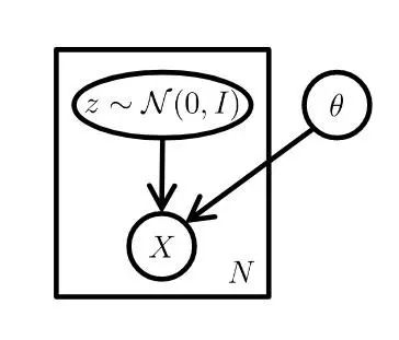 现在主要目标是用一些参数对数据进行建模,这最大化了训练数据 X 的可能性。简而言之,我们假设一个低维的特征向量(latent vector)产生了我们的数据 x(x∈X),我们可以用一个确定函数 f(z;θ) 将这个特征向量映射到数据 x 上然后评估(见图 1)。在这种生成过程中,我们的目标是最大化 X 中每个数据的概率,