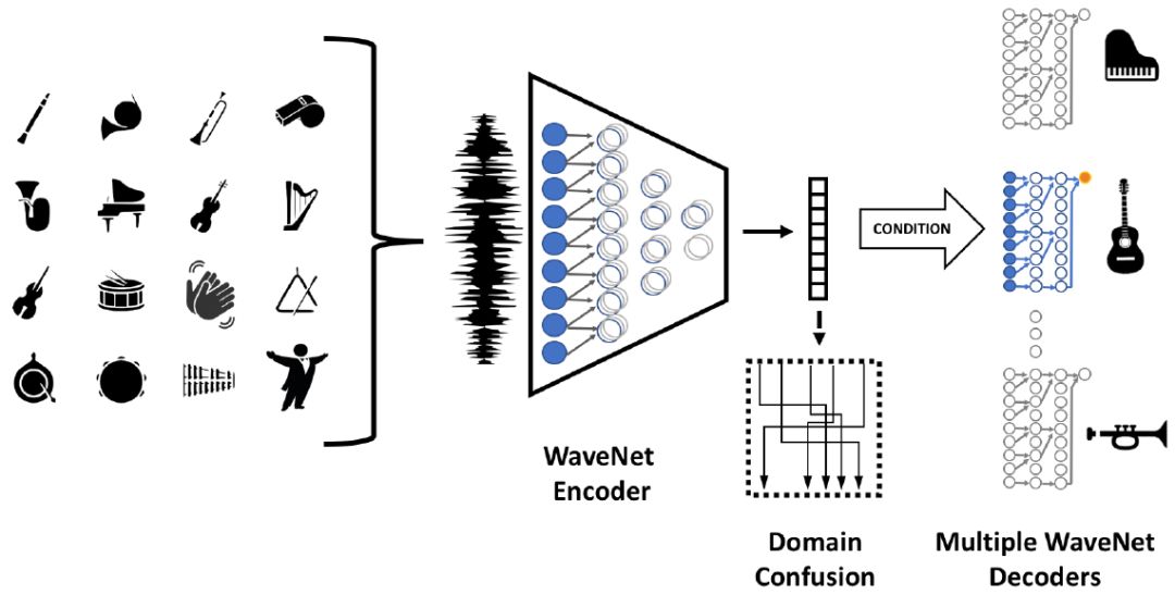 Facebook AI Research 近日提出了一种基于多域 WaveNet 自编码器的跨乐器、流派、风格的音乐转换方法。在 NSynth 和从专业音乐家收集的数据集上的实验评估上,该网络实现了令人信服的音乐转换,甚至可以转换口哨声;这使得未经训练的人类也具有了创作乐器音乐的潜能。