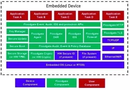 Floodgate IDS对嵌入式Linux和RTOS设备提供保护,其能检测出固件、配置信息和静态数据的改变。Floodgate Secure Boot确保只有从OEM认证的固件才允许在这台设备上运行。Floodgate Agent提供对于嵌入式和物联网设备的态势感知、安全事件报告、命令审计日志和安全策略管理,同时也提供与企业安全管理系统的集成。