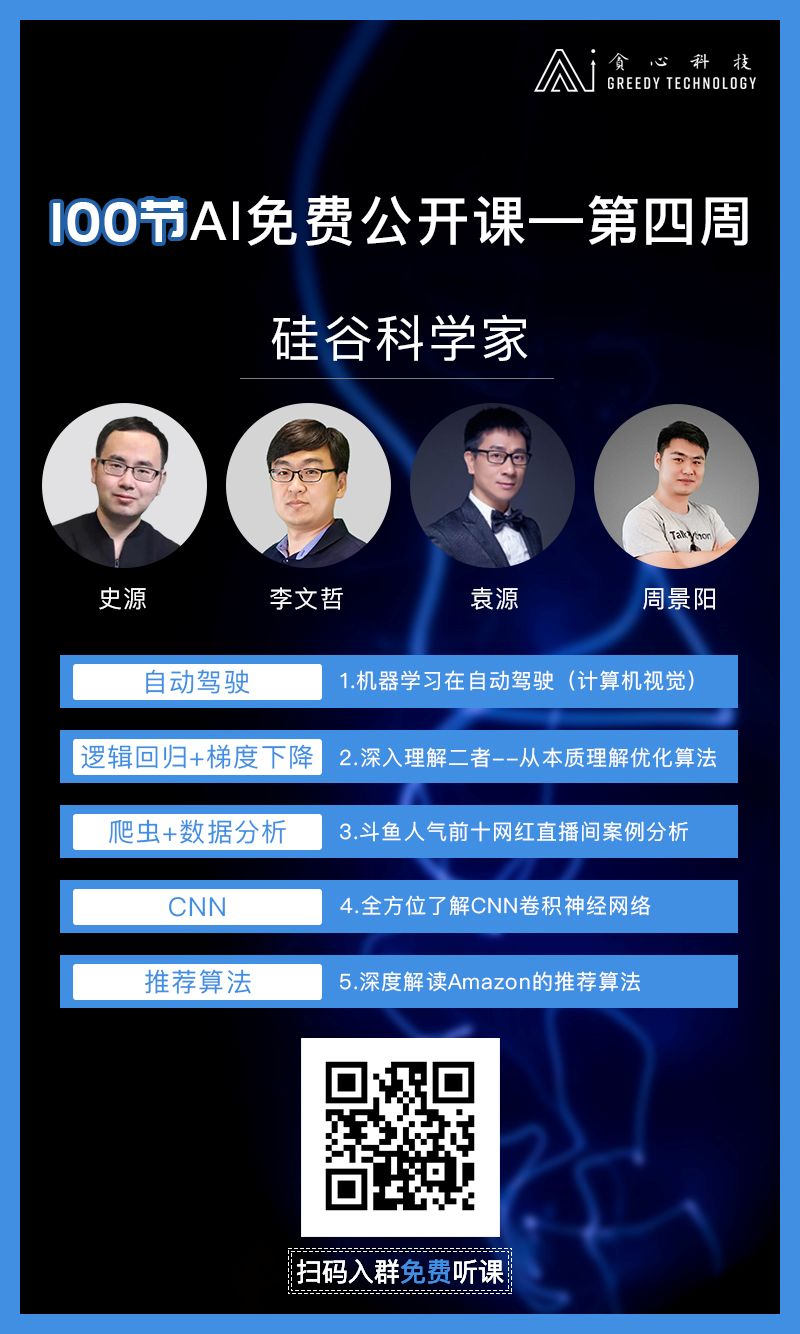 所以为了让大家能够高效率入门人工智能行业,我们邀请硅谷顶级科学家为大家在线直播100节免费公开课,一周3-4节课。