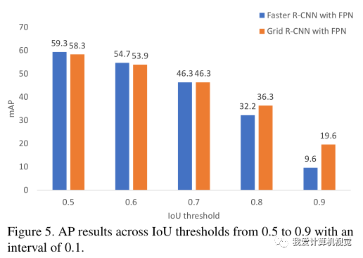与Faster R-CNN相比,发现精度提升主要来自高IoU阈值的部分,如下图所示。