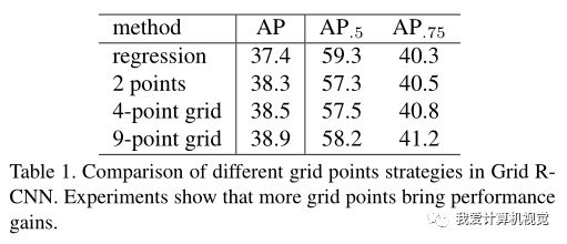 相比回归的方法,Grid R-CNN精度更高,而且随着点数增加精度也在提高。