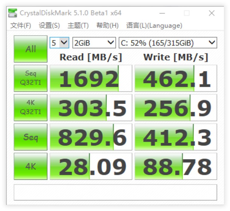 战 66 这次专门升级了 SSD,从原本的 256G 升级到了 360G PCIe SSD。这一点就很讨我的喜欢。一台需要经常在外工作的电脑,其实不需要太大的硬盘容量,读写速度是更重要的指标。这块 Intel 的 PCIe SSD,读写速度可以达到 1692MB/s 读,462MB/s 写,远超常规 SATA 接口的 SSD 。