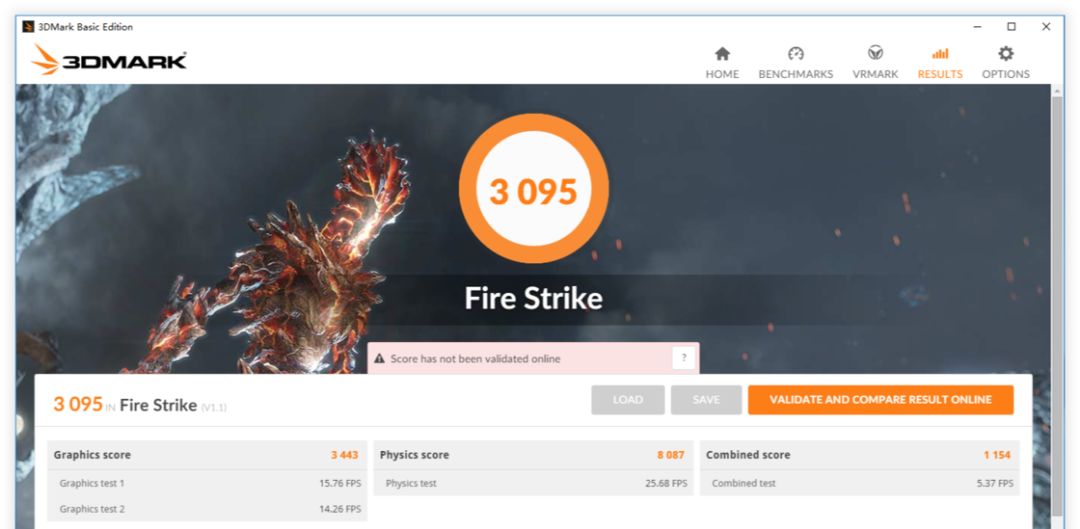 我使用 3D Mark 对电脑进行测试,最终得分为「3443」,显卡得分为「3095」,从分数上看,MX150 的性能大致在游戏本上的 GTX 950M 水平。