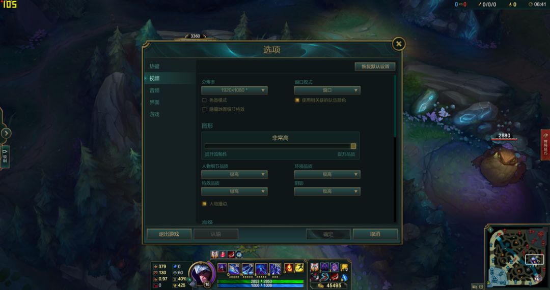 我首先在这台机器上测试了一些主流游戏,在英雄联盟中开启最高画质可以做到 100 帧稳定运行,复杂场景下也有 90 帧以上的帧率,中高画质更是可以达到 120 帧流畅游玩。