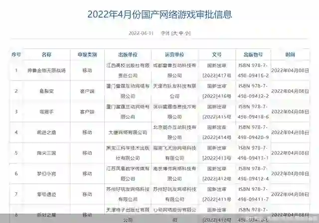 据报道,国家新闻出版署发放4月游戏版号,共45款国产游戏获得版号,包括三七互娱的《梦想大航海》、中青宝的《铸时匠》等。这也是时隔8个月,国产游戏版号重新获批。共有45款游戏拿到版号,其中移动游戏39款,客户端游戏5款、Switch游戏1款。