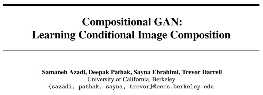 我们开发的这种方法可以对图像中的目标组合建模。我们将组合两个输入对象图像的任务视为生成一个联合图像,该图像可以捕获这两个对象在自然图像中的联合交互关系。例如,给定椅子和桌子的图像,可以产生一张包含相同的成对桌椅的自然交互的图像。一个可以正确捕捉组合特征的模型需要对遮挡排序(如桌子在椅子前面)和空间布局(如椅子在桌子内滑动)有所了解。据我们所知,我们是第一个在没有任何清晰的关于目标布局的先前显式信息的情况下,在图像条件空间中解决该问题的组。