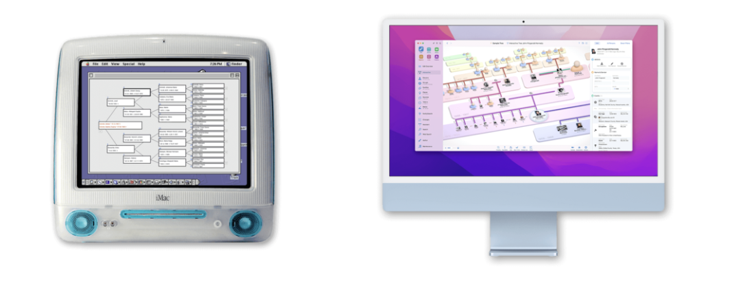 左:早期版本的 MacFamily Tree