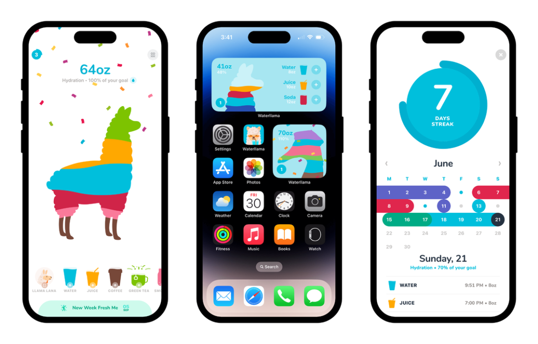 Vitalii 告诉我们,除了为 app 增添趣味性,他们也一直在关注和研究 Apple 系统平台的最新功能,并通过 app 将这些功能带给用户,帮助他们获得更好的使用体验。《喝水羊驼》自然也对多个 iOS 系统中的实用能力做了适配,比如主屏幕和锁定屏幕小组件、HealthKit 健康应用的集成等等。