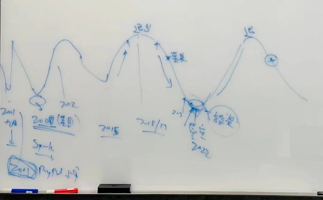 2005-2007年当波段向顶端挪去,外资纷纷在中国设立机构(如红杉中国、GGV、金沙江),本土基金也如雨后春笋(如高瓴、今日资本)。中国风投迎来火热年份。沈南鹏、张磊、徐新等知名GP都于此时上车。