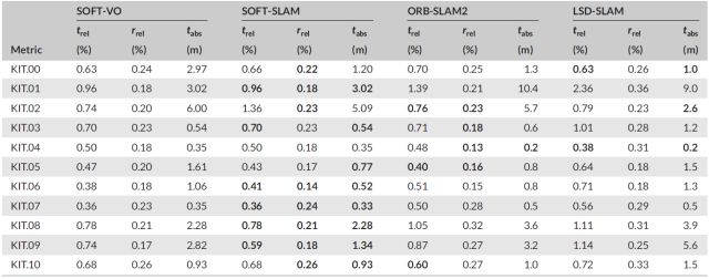 图8 SOFT-SLAM与其他主流系统在KITTI数据集上的测试结果对比