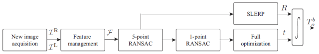 作者开发这套系统的目标是参加欧洲机器人挑战赛(EuRoC)。这个比赛的目的是使用小型无人机对工业设施进行空中检查。本文所提方法包括一个基于特征跟踪的立体视觉里程计算法(SOFT),该算法目前在KITTI数据集的立体视觉方法中居于首位。作者通过SOFT进行位姿估计,并且构建了一个基于特征点的位姿图SLAM方案,称之为SOFT-SLAM。SOFT-SLAM具有两个完全独立的线程分别进行里程计和建图工作,并且支持大范围的回环检测以及保证系统的全局一致性。此外,作者还提供了一个融入IMU信息的系统版本。