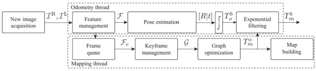 无人机在无GPS环境下的自主导航是一个具有挑战性的问题,尤其对于有效载荷小且电池使用时间有限的小型无人机来说更是如此。基于视觉的SLAM可能成为上述问题的一个解决方案,这是因为相机具有尺寸小,重量轻,可用性好以及信息带宽大等优点,很好规避了无人机的所有约束。在本文中,作者提出了一个能够输出高精度定位结果以及稠密环境地图的立体视觉SLAM系统。
