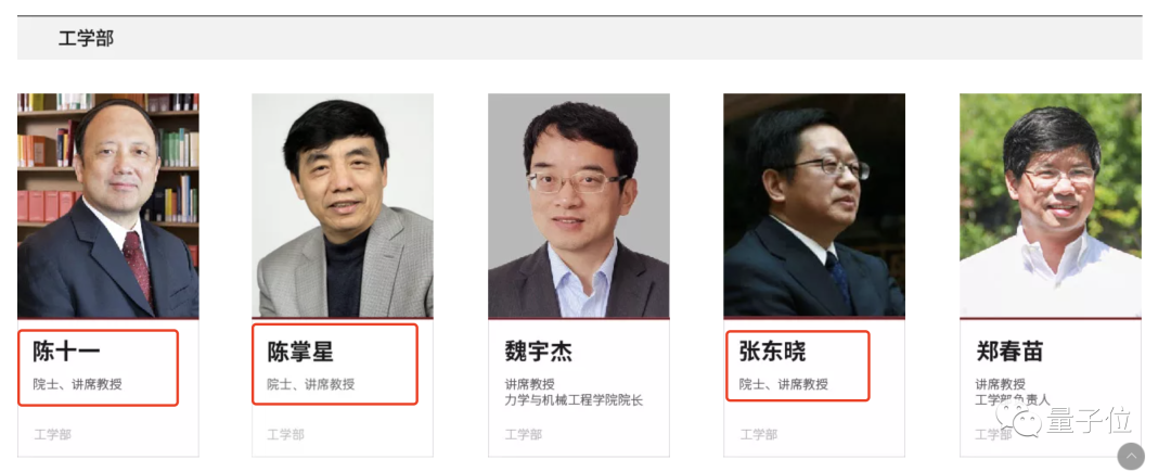 就已有的师资情况来看,工学部最为庞大,有五位教授、两位副教授及五位助理教授。而在这五位教授中,有三位是院士。