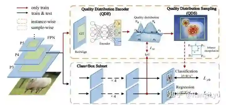 LAD就是使用教师网络预测的结果去计算标签匹配,来指导学生网络训练。但是,KD存在的问题就是需要额外再训练一个教师模型,这就导致训练所需要的资源大大增加!那么有没有一个即插即用的小插件能够做这件事呢?其实,旷视在 CVPR 2021提出的IQDet,就使用了一个小模块,去对每个实例预测PAA中提出的高斯混合质量分布的三个参数来指导检测头的训练。但由于QDE需要先对Feature Map做ROI Align,也显得有一些复杂了。