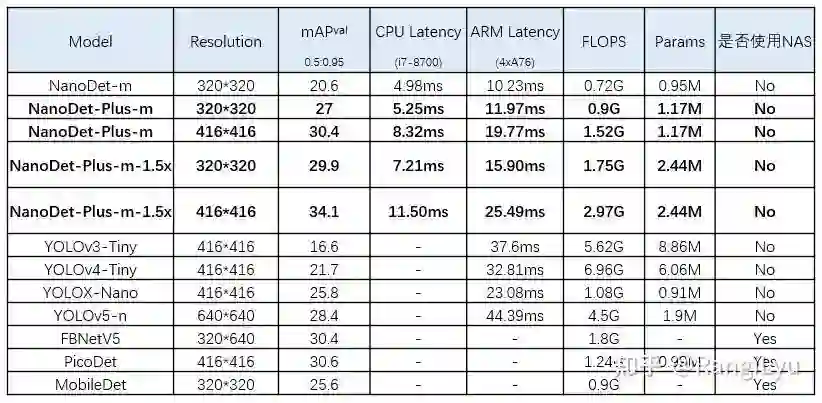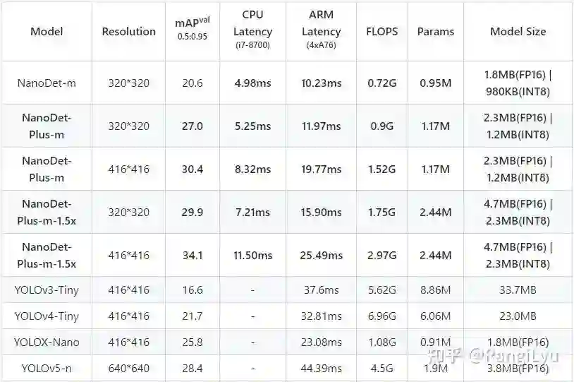 最后再放一下NanoDet-Plus和其他模型的对比: