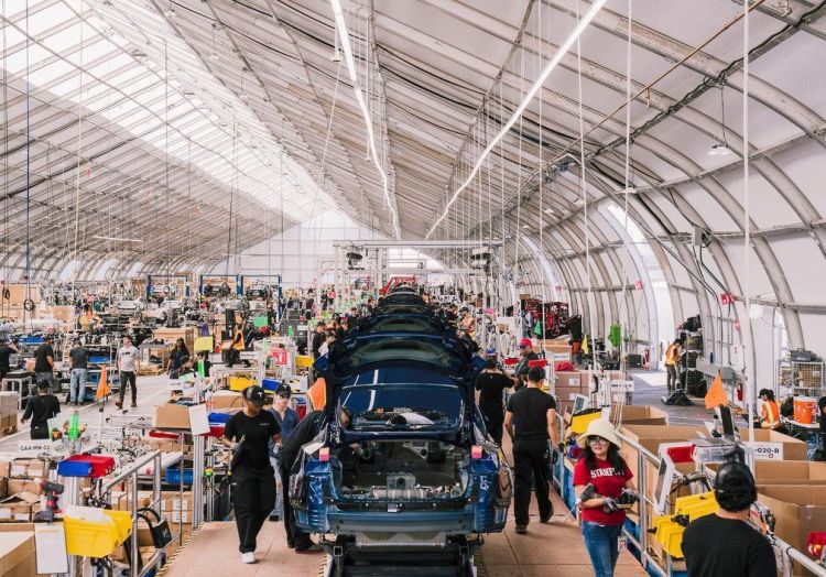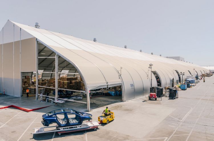 为了实现Q2每周5000辆的产能目标,特斯拉曾在加州弗里蒙特工厂内搭建了一条全新的生产线,用来生产Model 3。这条生产线是竟然是用帐篷搭建的,而以前的自动化生产组装变成了部分人工生产组装的方式。