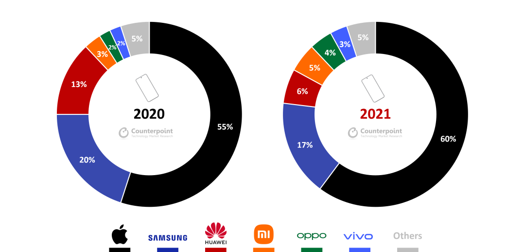 当然这一方面也是因为国内厂商冲击高端市场走的并不顺利,华为留下的大部分高端机市场,还是被苹果抢去了大部分。