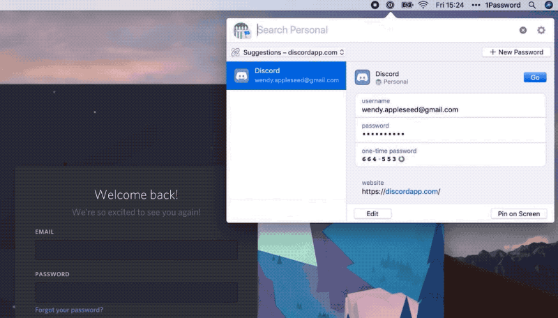 1Password 7.3 更新 (macOS):重新设计了 1Password mini,支持拖拽密码操作。