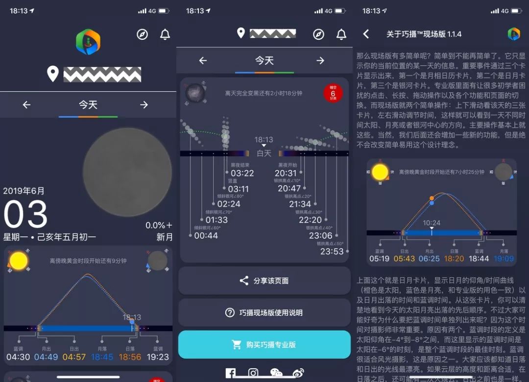 除了现场版外,巧摄还提供售价 68 元的 专业版,除了现场版的信息外,它还会提供景观模拟功能,可以预测一些壮丽景象最佳的拍摄地和角度等。