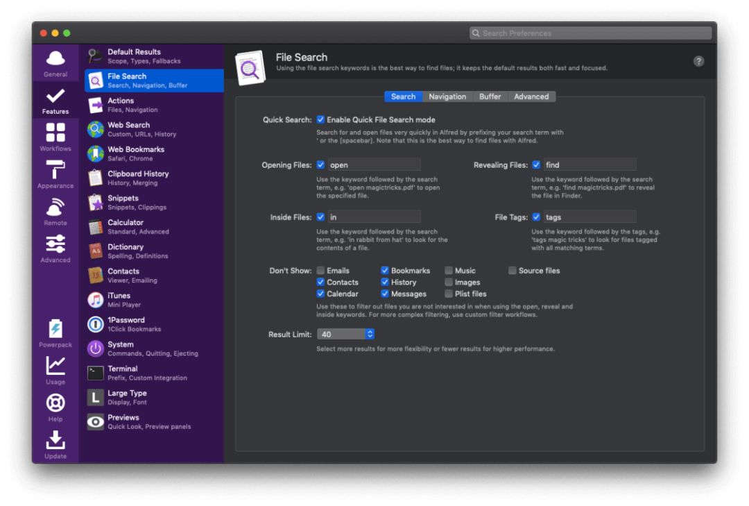 上周,macOS 效率应用 Alfred 迎来了 4.0 大版本更新。新版本支持深色模式,可跟随系统外观模式自动变化。偏好设置界面中的面板标签由之前的顶部横排改为左侧竖排,与各面板内部的竖排列表更加一致。