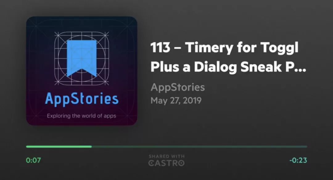 Castro (iOS):播客应用 Castro 更新增加了与 Overcast 类似的播客片段分享功能。