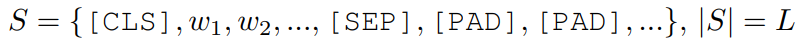 文本输入采用常规做法,使用 WordPiece 切分原始输入文本,之后添加 [CLS] 和 [SEP] 标记,并用 [PAD] 补齐长度得到文本输入序列: