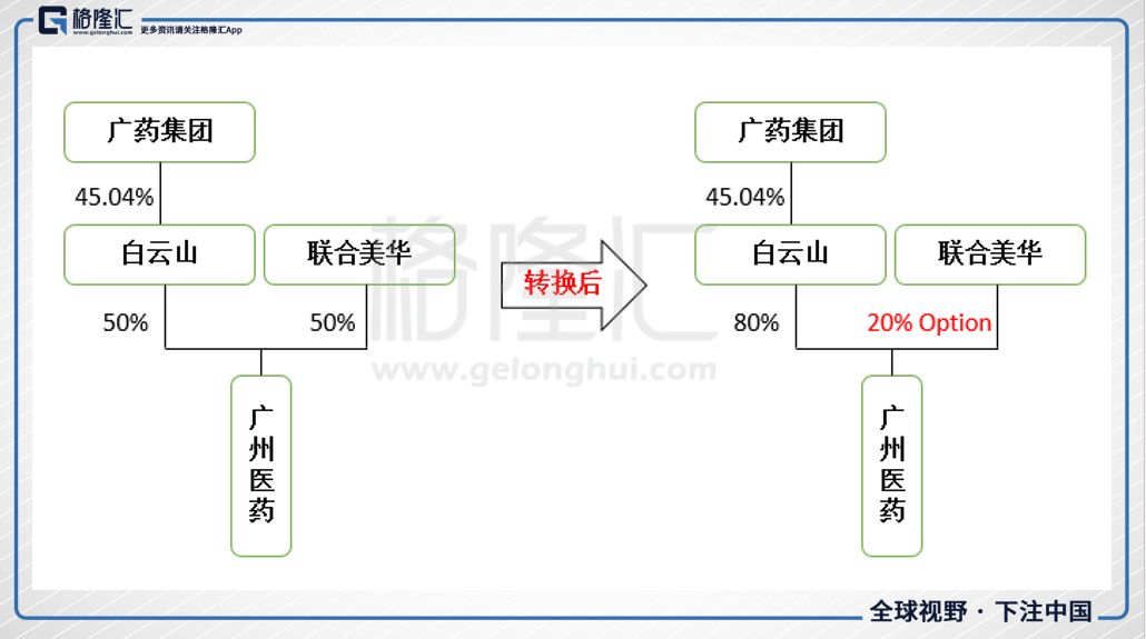 至此白云山对广药的股份从50%增持到80%。剩余的20%股权,白云山以Option的形式售于联合美华,联合美华可以在行权期内(交割完成后的六个月至三十六个月)售出。