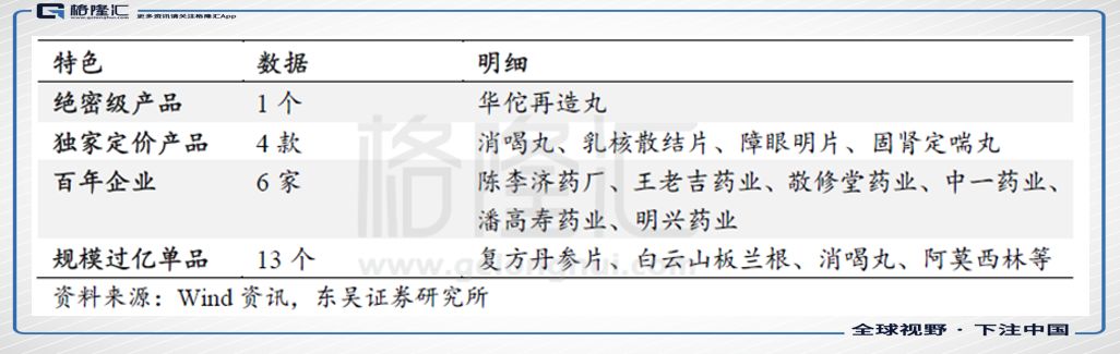 公司拥有13家中华老字号药企(含控股子公司和合营企业),其中一个绝密级产品;6家为百年老字号;4个独家定价产品;13个过亿单品,在华南地区乃至全国都拥有明显的中成药资源优势。
