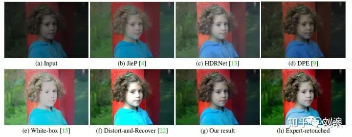 而且不是像以前的工作那样,直接学习图像到图像的映射,而是在新网络中引入中间照明,将输入与预期的增强结果相关联,增强网络从专家修饰的输入/输出图像学习复杂的摄影调整的能力。在此模型的基础上,构造了一个对光照采用约束和先验的损失函数,结果证明,新算法模型,效果超过了市面上一众当红的多摄多硬手机