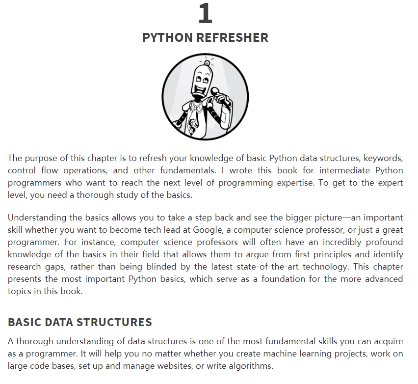 本书共分五章,内容包括技巧和技巧、正则表达式、机器学习、核心数据科学主题和有用的算法。对一行程序的详细解释将介绍关键的计算机科学概念,并提高您的编码和分析技能。您将了解高级Python特性,如列表理解、切片、lambda函数、正则表达式、映射和缩减函数以及切片分配。您还将学习如何: