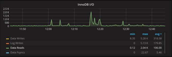 下图是“Percona 监控和管理”的 InnoDB 指标仪表板中的 InnoDB I/O图: