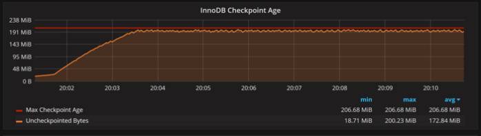 您可以通过查看未实际使用的重做日志空间大小来判定。最简单的方法就是查看“Percona 监控和管理”的 InnoDB 指标仪表板。