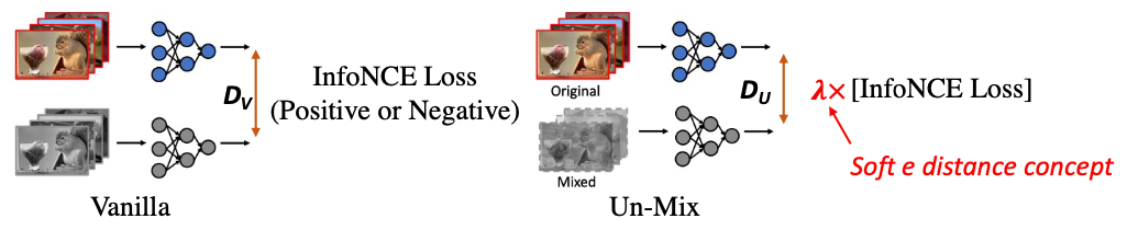 右边是本文 Un-Mix 提出的研究思路,即通过在一个分支上做图像融合,使得最后的距离度量变为一个 [0,1] 之间的软化系数