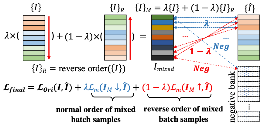 具体怎么来方便简单地实现这一机制呢?本文作者提出了如下一种策略:通过在一个 mini-batch 内部通过某种顺序做样本融合,从而得到固定的距离度量,如下图所示: