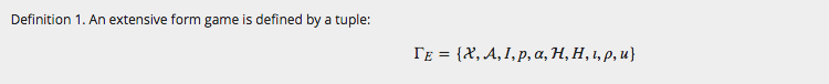 形式上,游戏由一些基本的数学实体表示。在博弈理论书中,你可以找到以下定义: