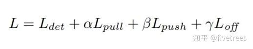 公式 4 用来缩小属于同一个目标(第 k 个目标)的两个角点的 embedding vector( etk 和 ebk )距离。公式 5 用来扩大不属于同一个目标的两个角点的 embedding vector 距离。