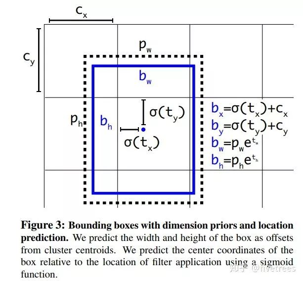 YOLOv2 中作者引入了 Faster R-CNN 中类似的 anchor,但是回归策略不同,对 bbox 中心坐标的预测不是基于 anchor 坐标的偏移量得到的,而是采用了 v1 中预测 anchor 中心点相对于对于单元格左上角位置的偏移,如下图