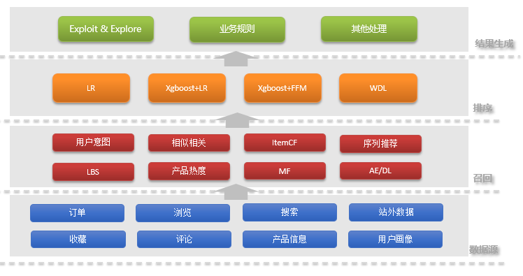 基于排序后的列表,在综合考虑多样性、新颖性、Exploit & Explore等因素后,生成最终的推荐结果。本文之后将着重介绍召回与排序相关的工作与实践。