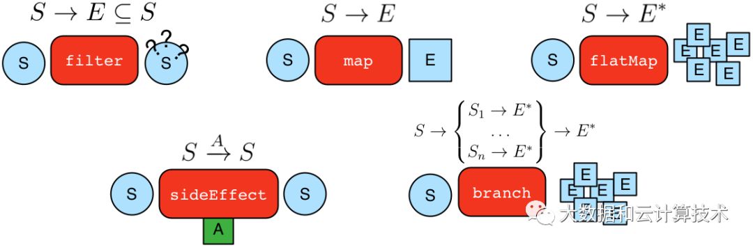每个步骤都会变换上个步骤的输出,像管道pipe一样,抽像出以下5种变换方式,每个step其实都从这5种方式派生出来。